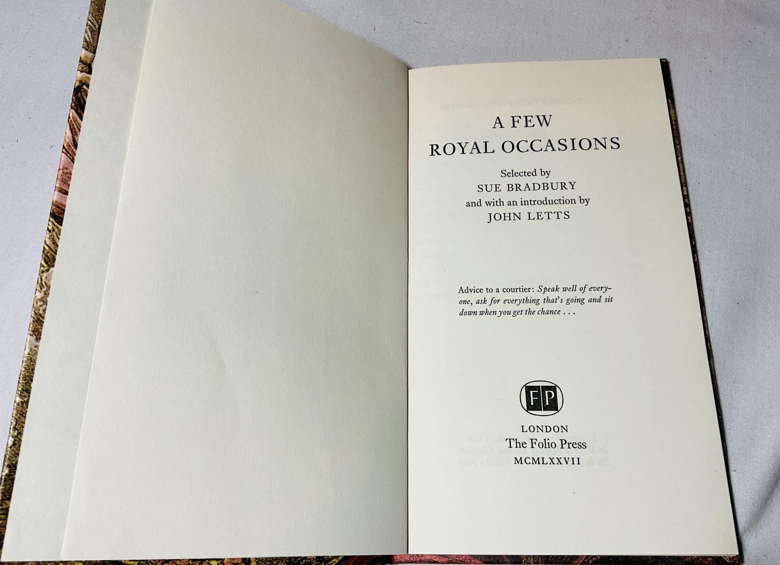Selections from Folio Society publications with reference to the Kings and Queens of Britain. First Fiolio Society edition. 64pp. Bookplate to front pastedown. VG