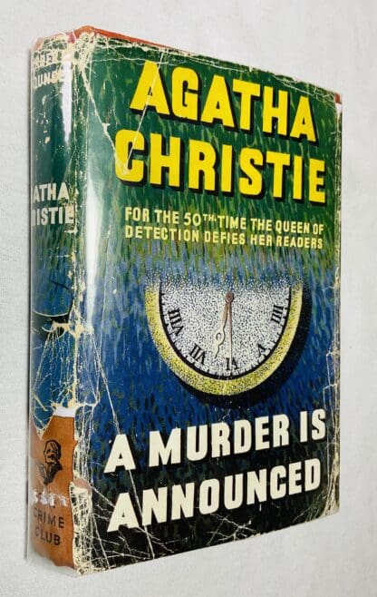 First edition of this classic Christie mystery. Slight spine lean. Orange cloth has a patch of fading where the jacket spine is chipped to the spine.