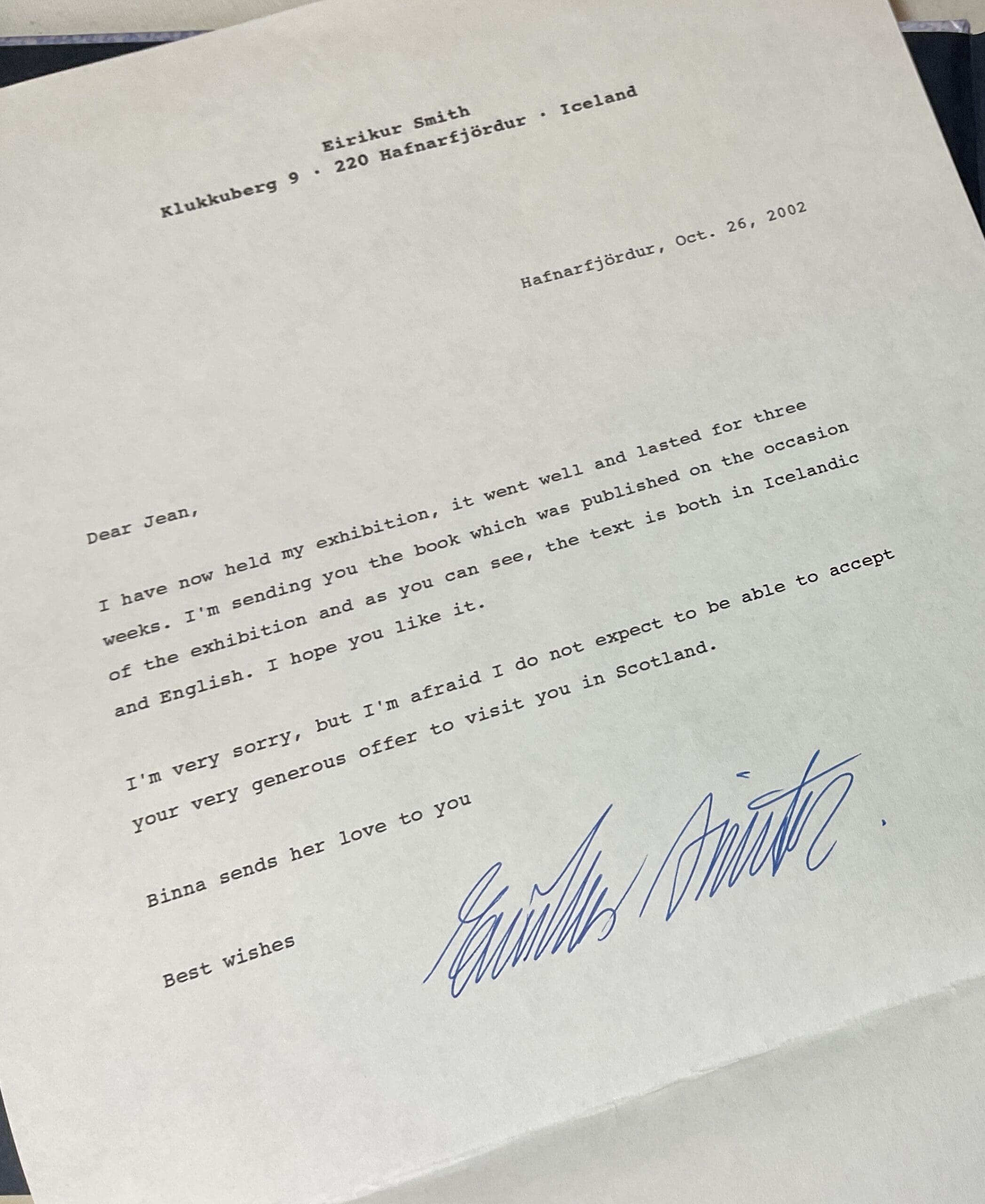 Icelandic abstract art. Enclosed is a letter from the artist to Jean Balfour, the Scottish environmentalist, forester and artist.  Gift inscription to the half title from the author. Laminated boards. VG