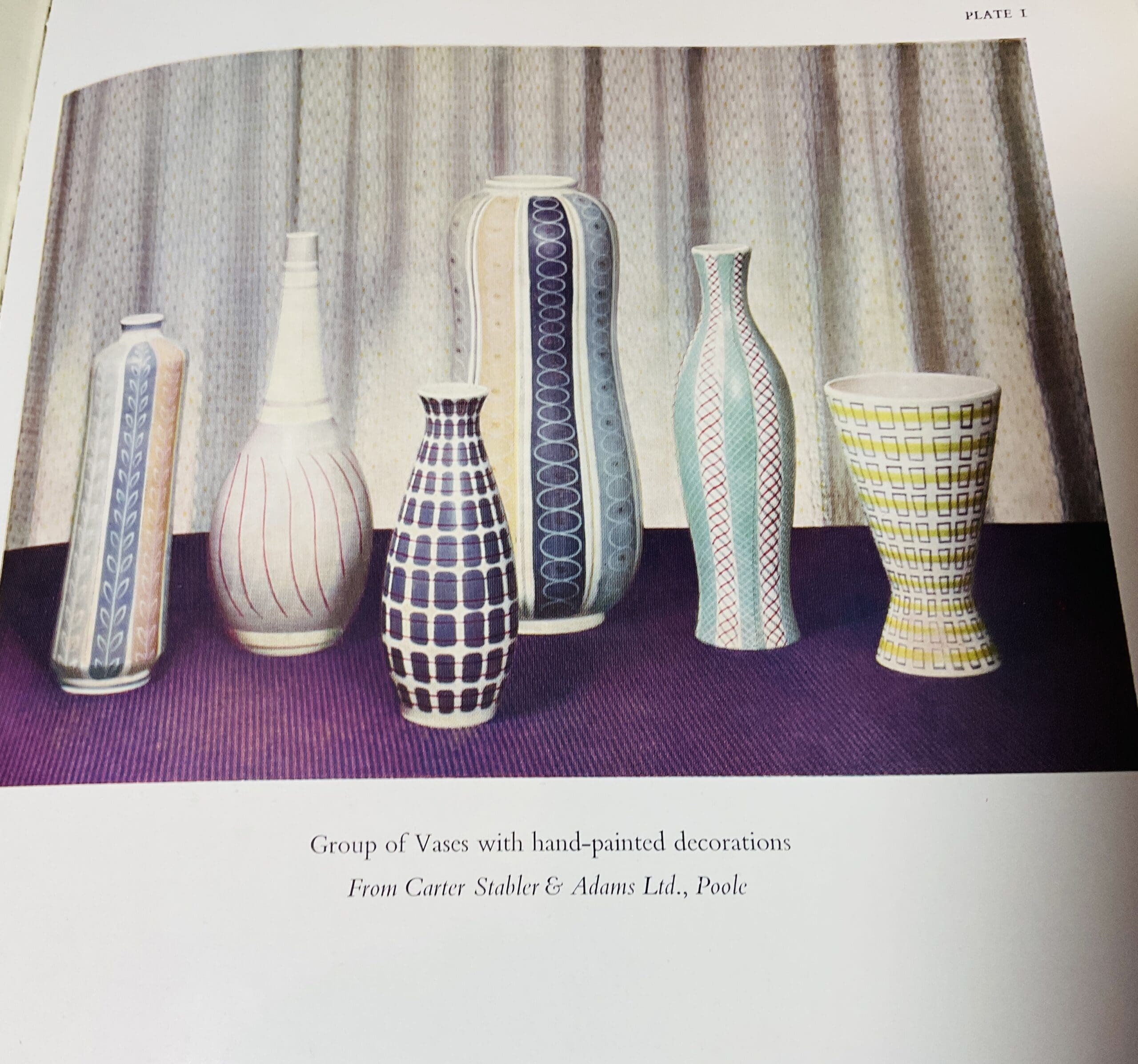 Illustrated guide to modern britissh potters and their work.  11½” x 9”. 78 pp with 48 colour and monochrome photographic plates to the rear. Hardback. Ex library copy in original binding of bluie cloth with gilt titles with neat class mark to base of spine and library marks to endpapers. and verso of title, but generally a VG copy.
