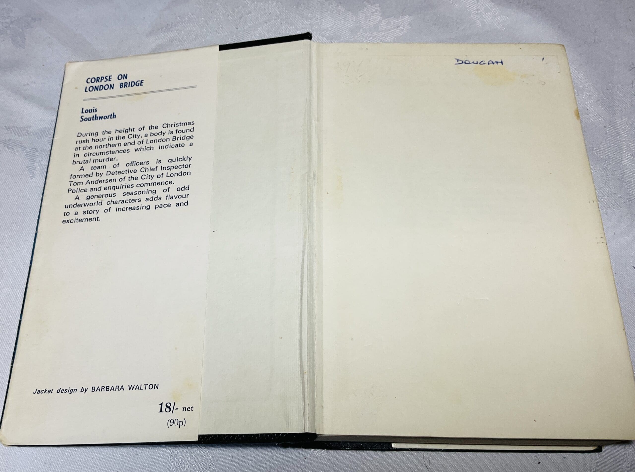 Christmas mystery where a body is found on London Bridge. Fair copy – Jacket wworn and with closed tears, inscription to fep , handling marks throughout and well-read.