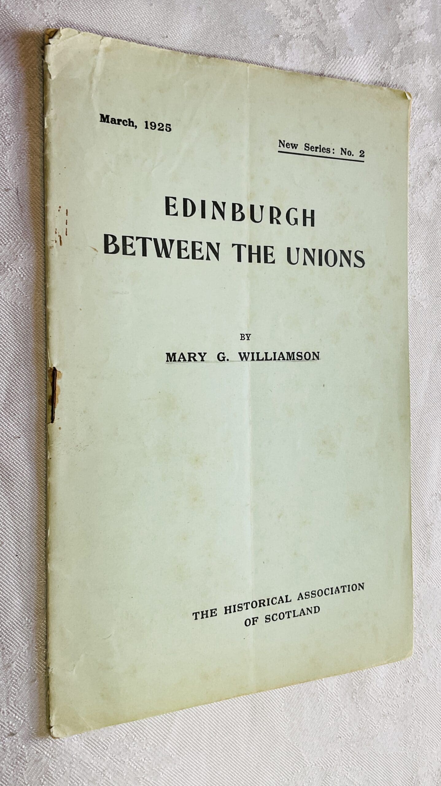 Softcovers, 15pp. Historical Association of Scotland, new series No.2. Edinburgh between 1603 and 1707. Covers a little worn otherwise VG. Scarce