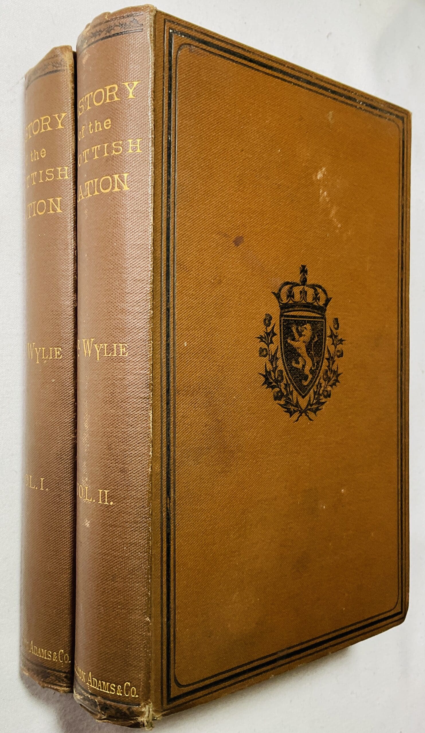 The first two volumes of Wylie’s general history of Scotland cobvering the period from the earliest times to the early church. Brown cloth with gilt titles . A VG set (a third volume followed later in 1890)