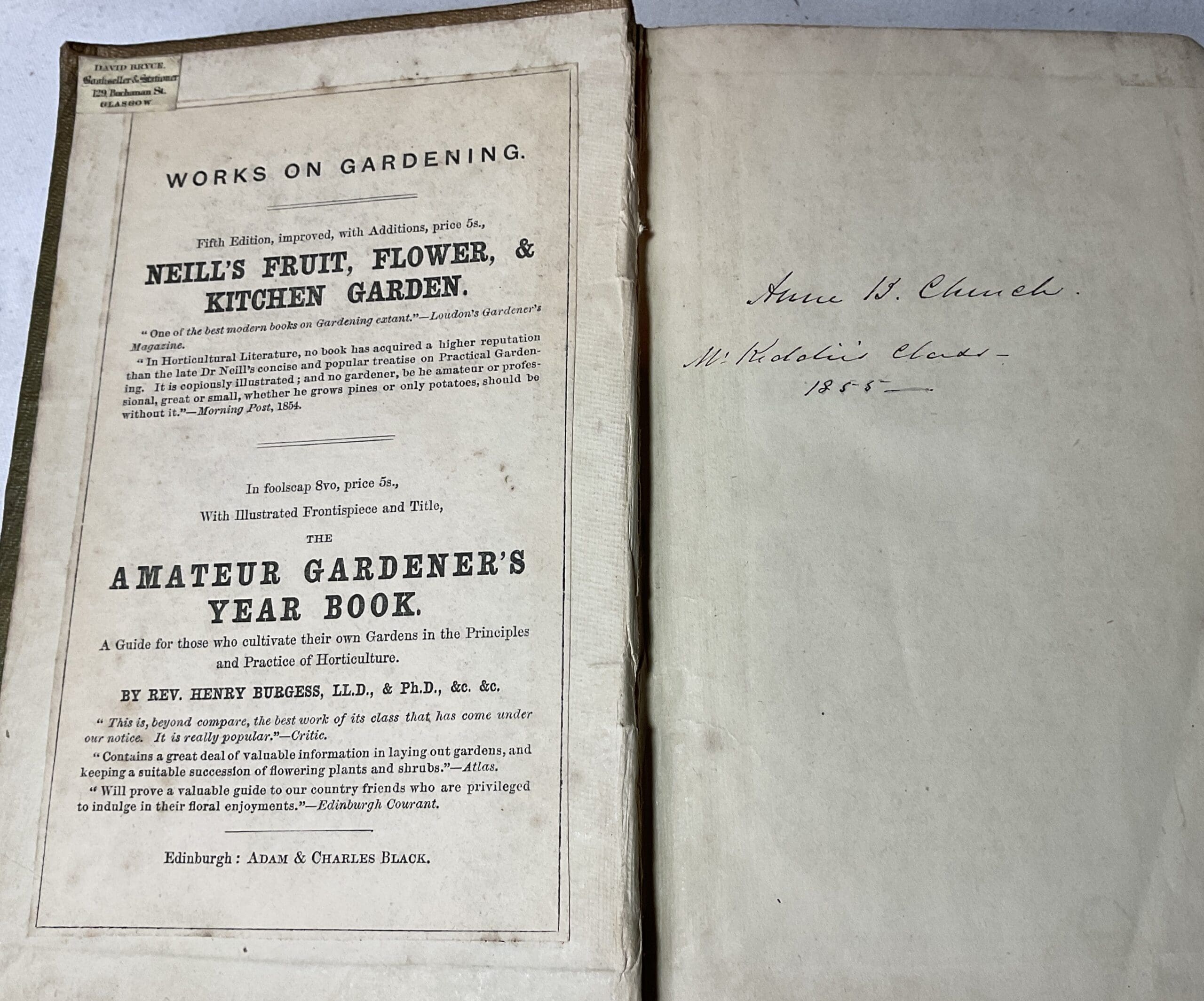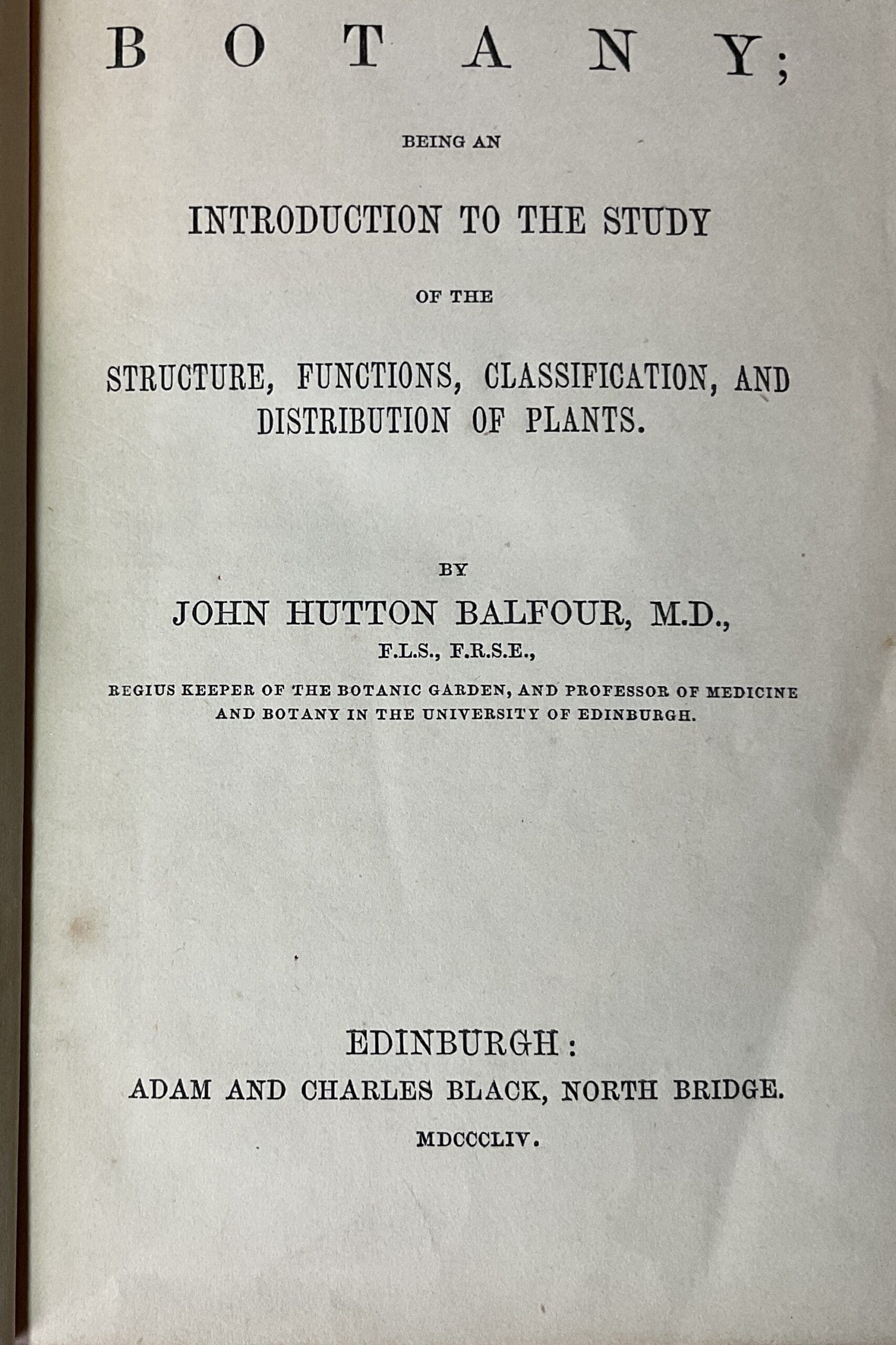 Textbook from this important botanist and educator who made large scale improvements to Edinburgh’s Botanical Gardens. Well read copy with inscription to fep and marked spine. xvi, 616 pages : illustrations ; 19 cm. Original green cloth.A Good copy.