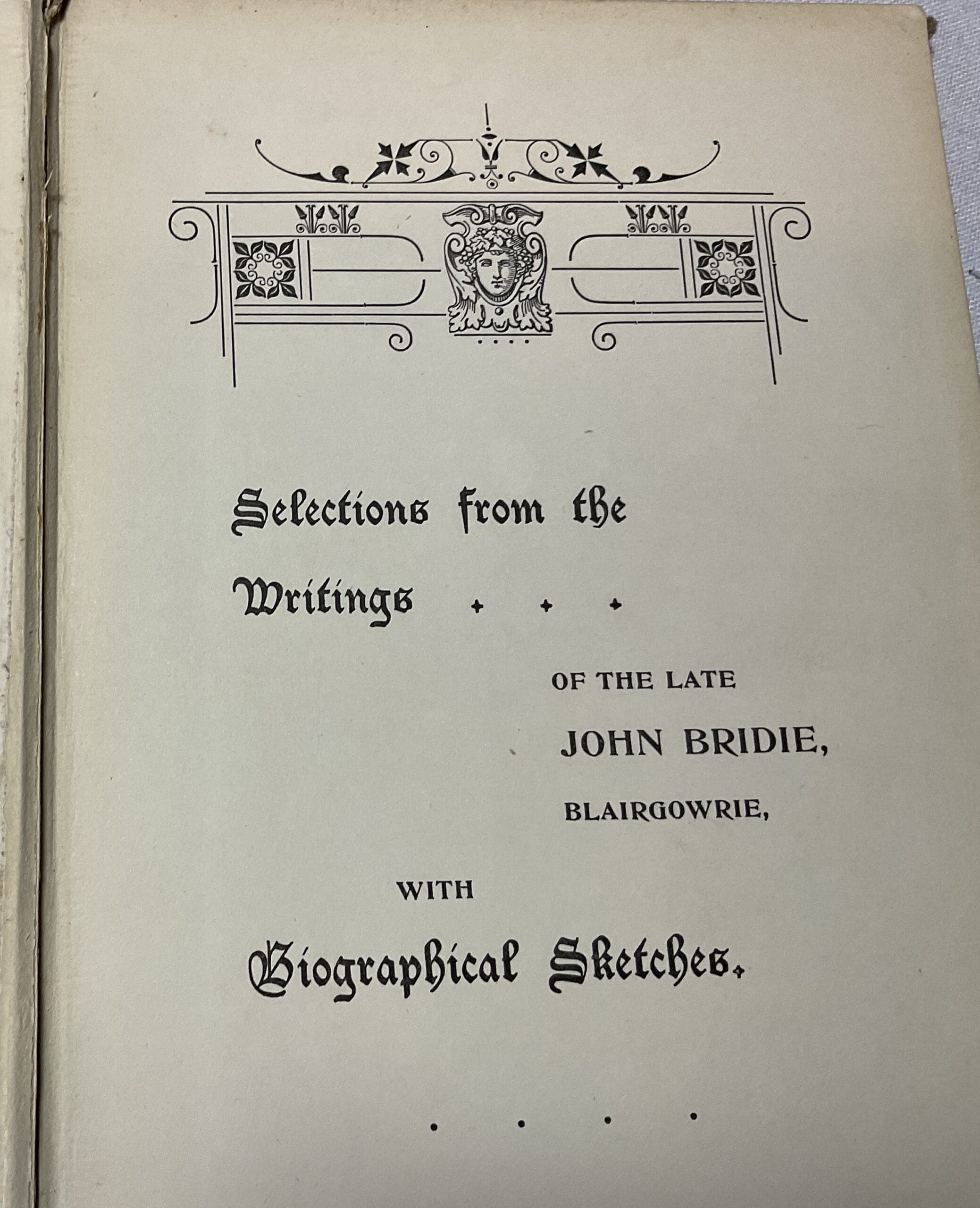 ![Selections from the Writings of the Late John Bridie [of] Blairgowrie, with Biographical Sketches. - Image 4](https://www.hadwebutknown.com/wp-content/uploads/2026/01/18960_4-scaled.jpg)
