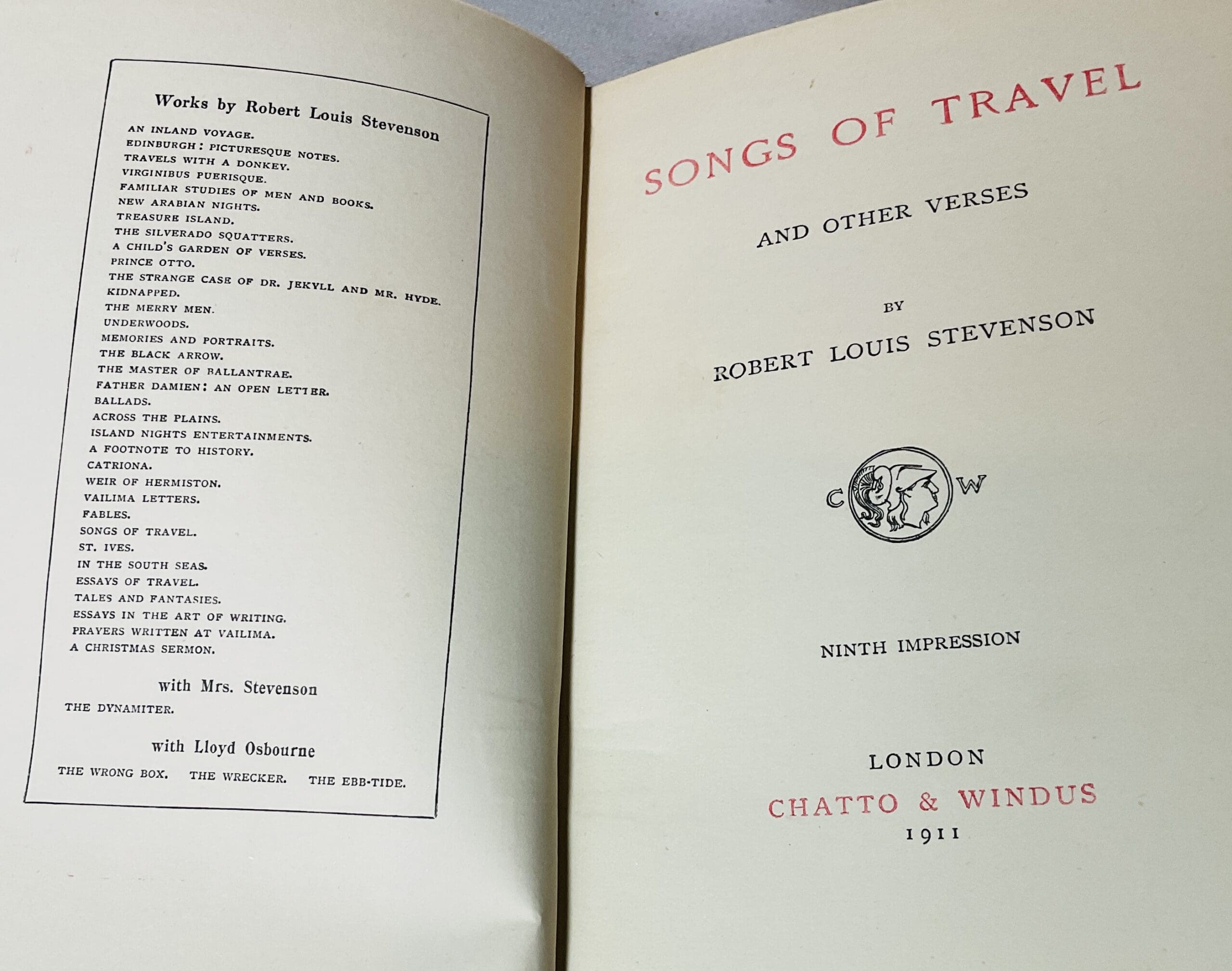 In the uniform black buckram with gilt tiles [note I have several more Stevenson’s in this binding – please ask for details and discounts for multiple purchases]. 9th impression. Near Fine