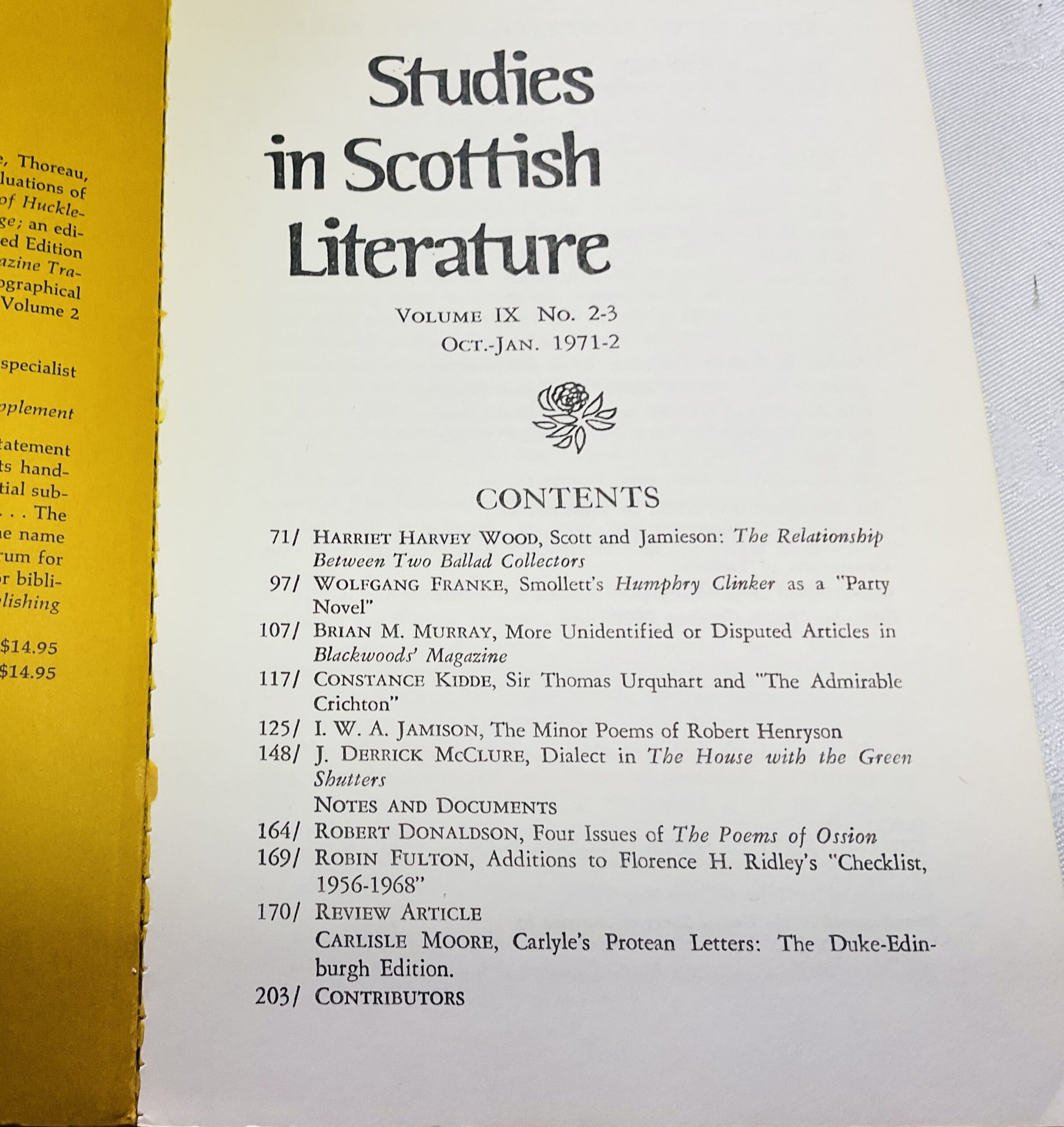 Literary journal which was influential in promoting the renaissance in Scottish literature. Softcovers, pp 69 – 202