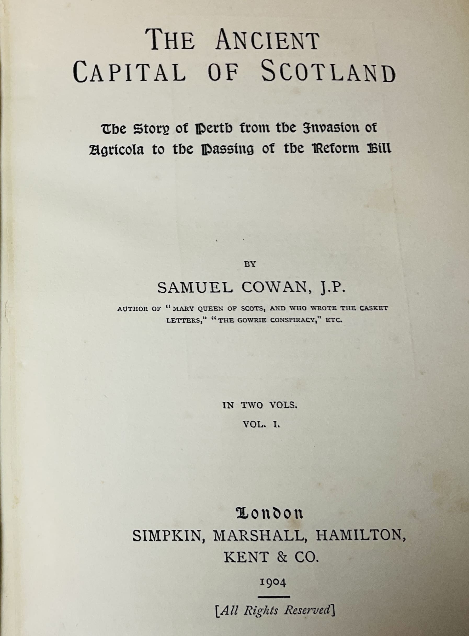 You're viewing: The Ancient Capital of Scotland: The Story of Perth from the Invasion of Agricola to the Passing of the Reform Bill [Two volume set] £30.00