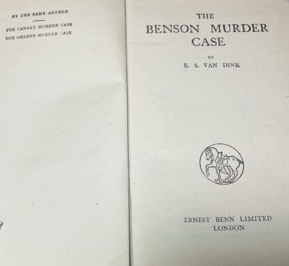 5th impression. Green cloth with gilt titles. His famous Philo Vance mystery – first in the series. VG
