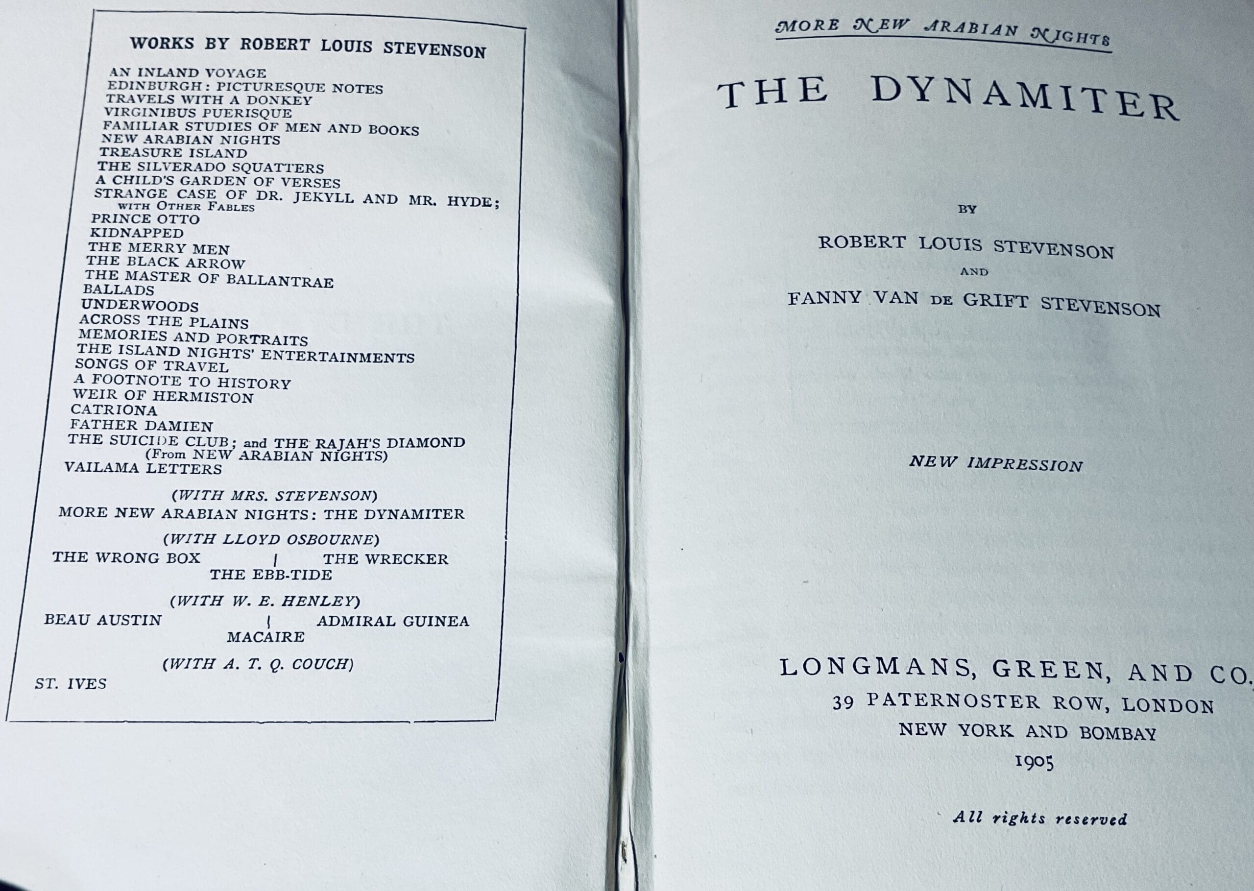 A New impression. In the uniform black buckram with gilt tiles and top edge gilt [note I have several more Stevensons in this binding – please ask for details and discounts for multiple purchases]. VG