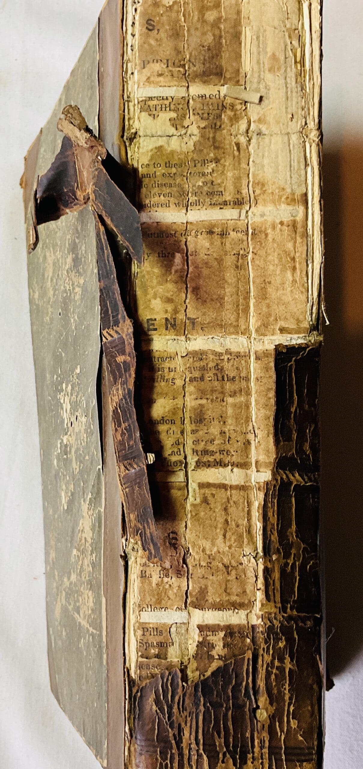 First edition of Dickens novel. With points ‘flys’ for ‘flies’ on p. 245 and ‘visiters’ for ‘visitors’ on p. 272. However this is in ppoor condition – Contemporary binding of half leather worn away and falling appart. Handling pmarks throughout and some foxing and two pages (pp233-36) half ripped out woith loss of the lower half of the text.The Phiz illustrations ar epresent though most have some foxing or handling marks. A breaker only, amnd priced accordingly.