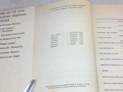 First thus – no.7 in the Thorndyke Library series. A few fading marks to the blue boards where the dustjacket has been damaged otherwise Vg in chipped and worn jacket which has extensive internal repairs but retains its attractive front panel