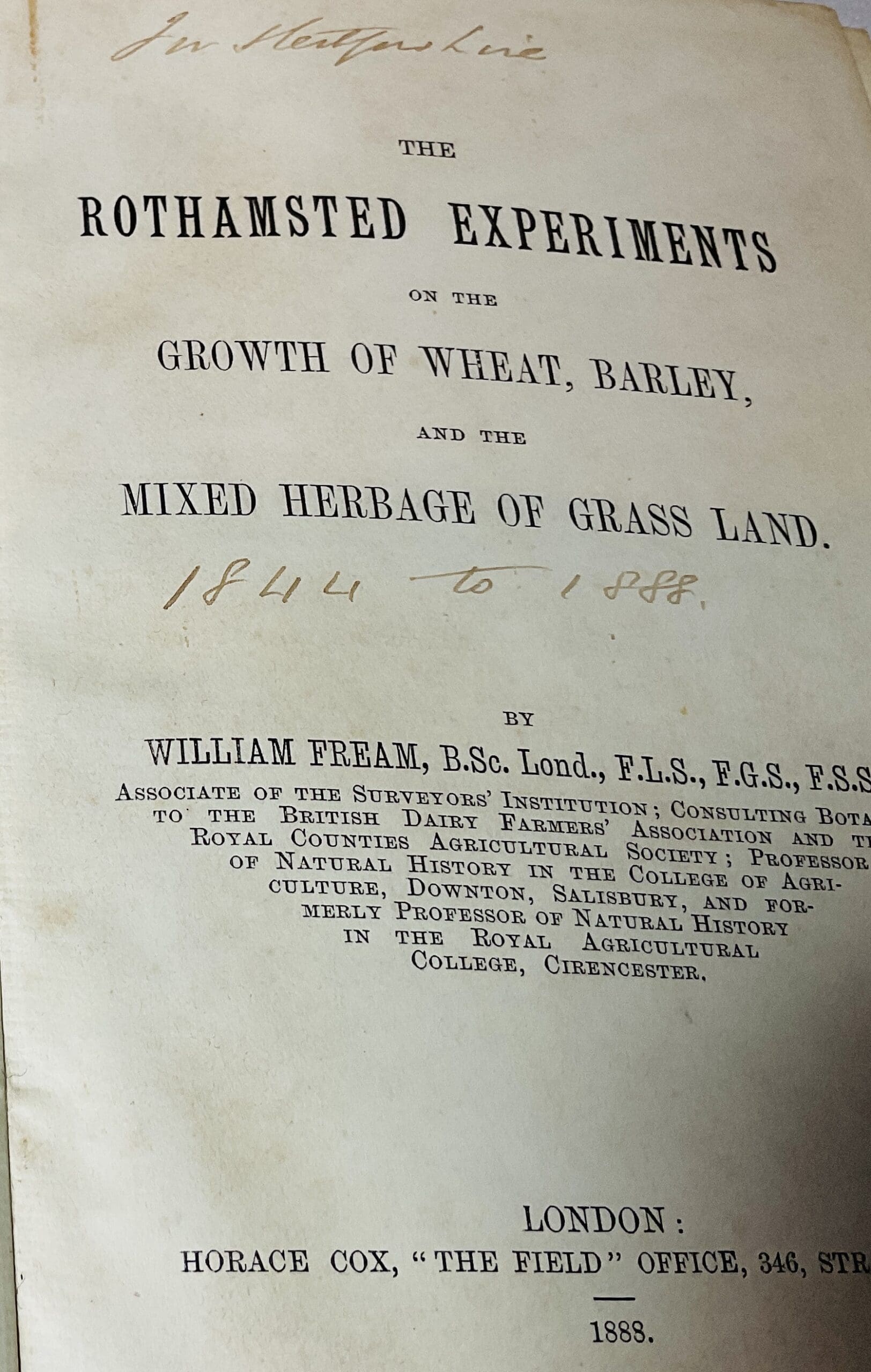 Note on title page with date and location of the experiments at Rothamsted – the agricultural experimental station established in 1834. . Original green cloth with gilt titles. A few light marks to covers otherwise VG-