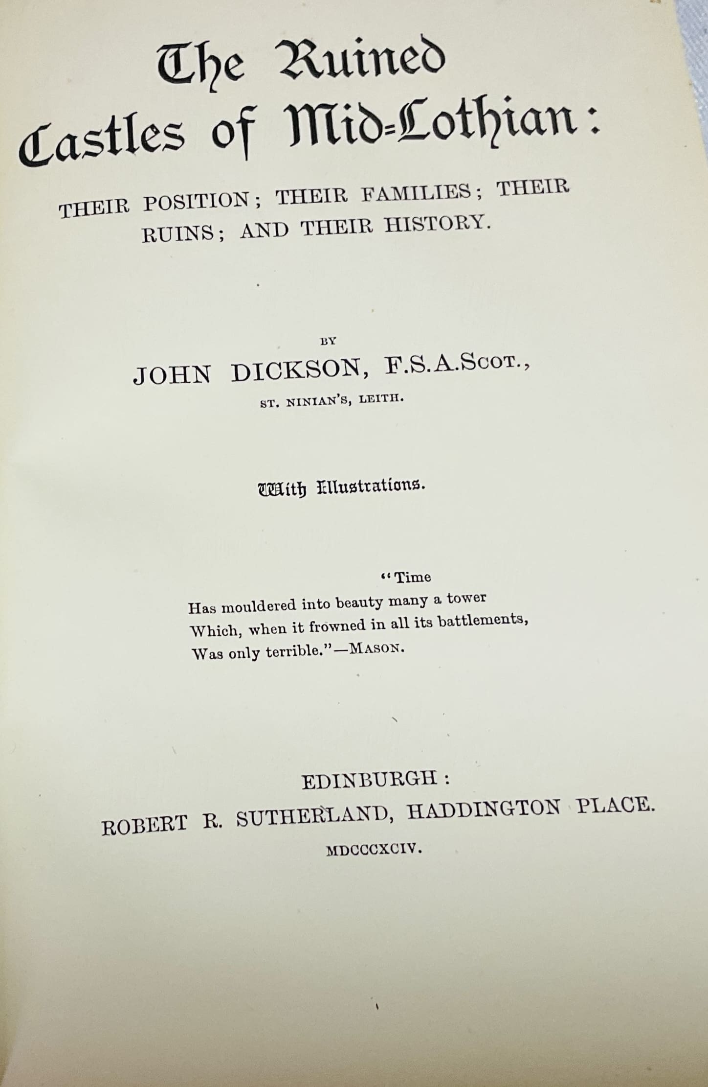 Study of the castles, including Roslin and Borthwick, Underlining to the Roslin Castle and the Saint Clairs section.. Slight wear to edges and hinges but generally VG