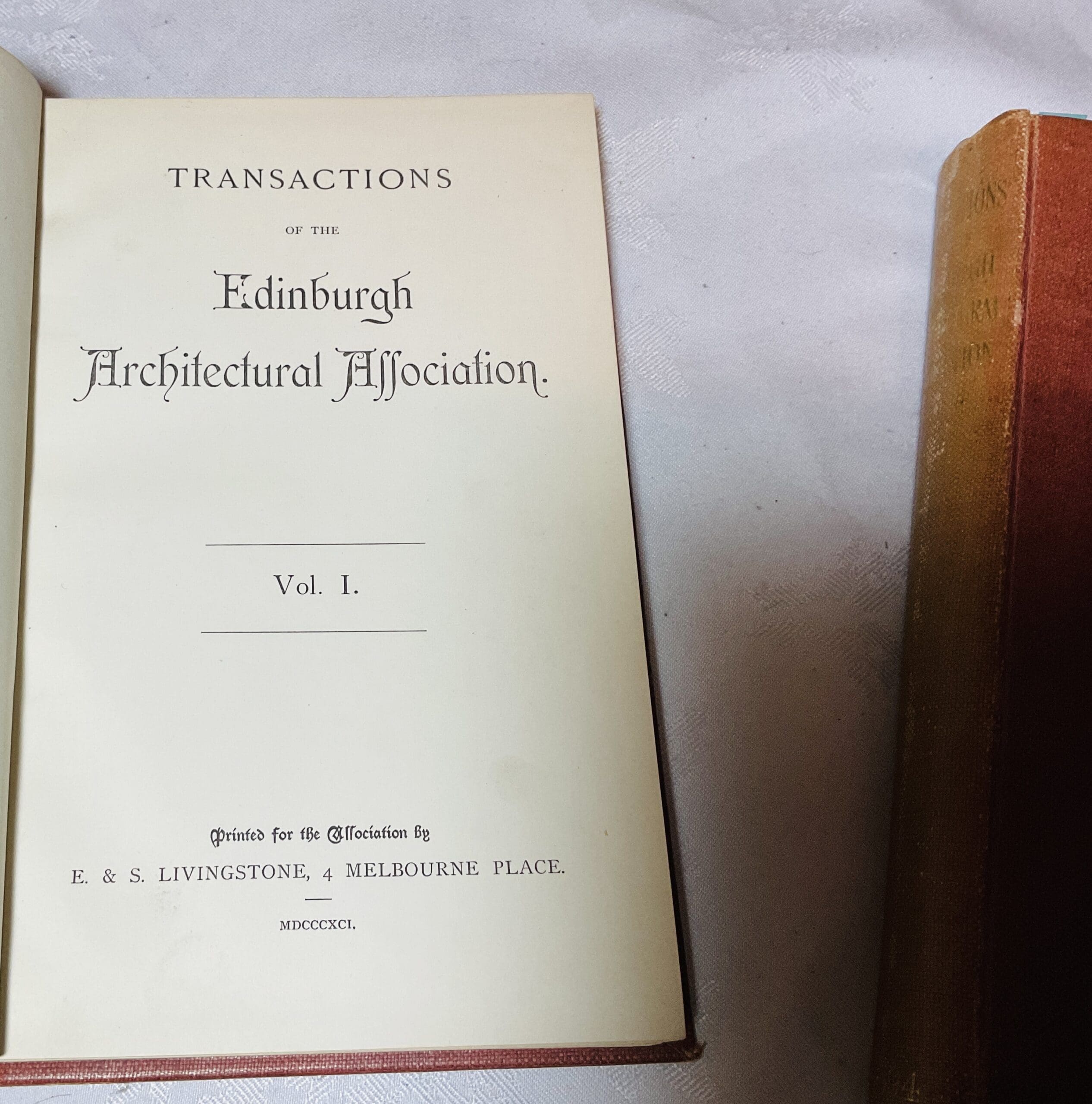 Th efirst two volumes in the series. With many articles, illustrations and plans of historic buildings. Written accounts of lectures on ‘Early Scottish Architects’ , ‘Edinburgh New Town’ etc. Burgundy buckram with gilt titles, 2 volumes. VG